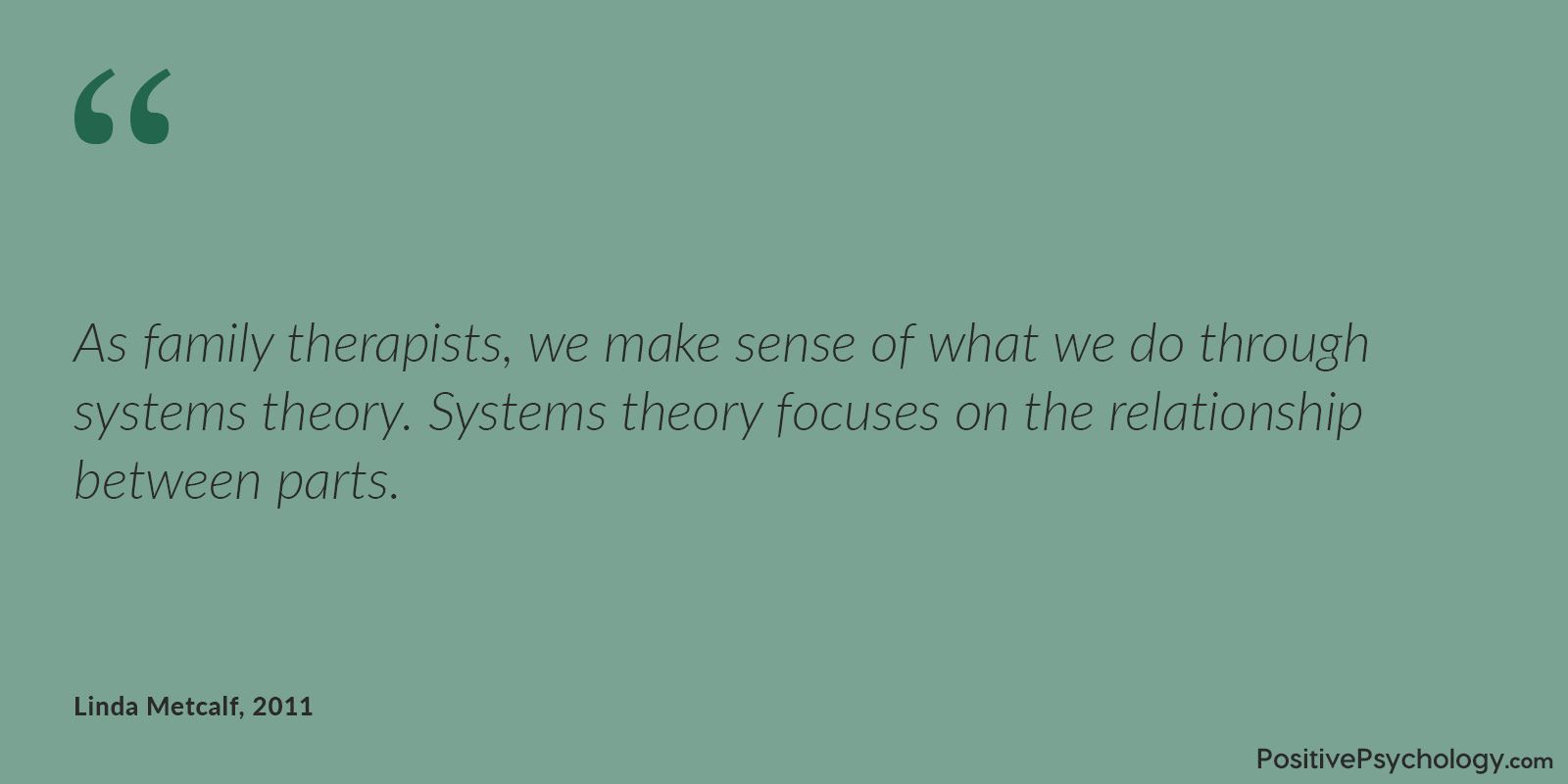 As family therapists, we make sense of what we do through systems theory. Systems theory focuses on the relationship between parts.