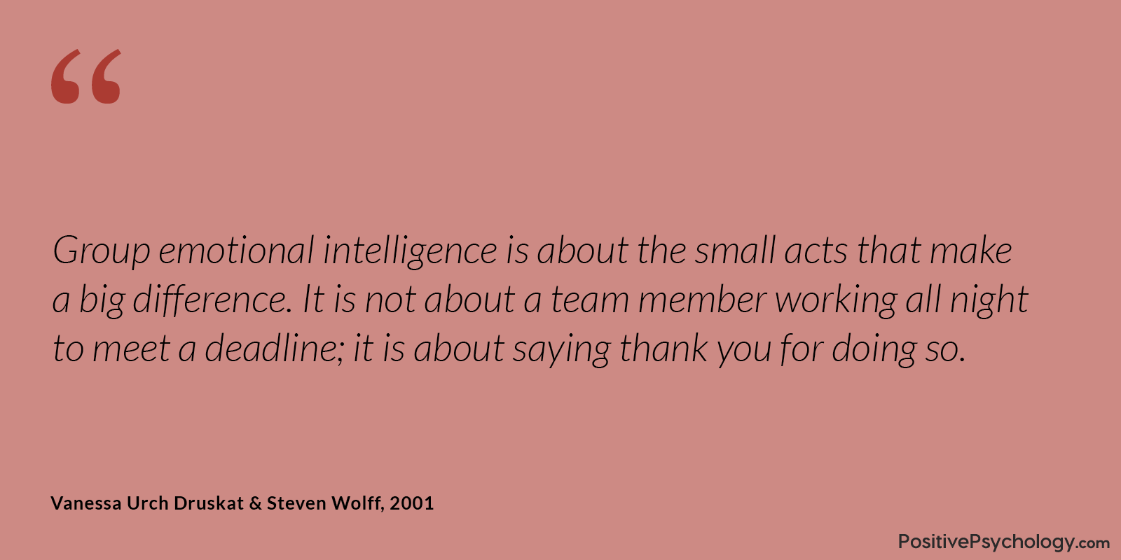 Group emotional intelligence is about the small acts that make a big difference. It is not about a team member working all night to meet a deadline; it is about saying thank you for doing so.