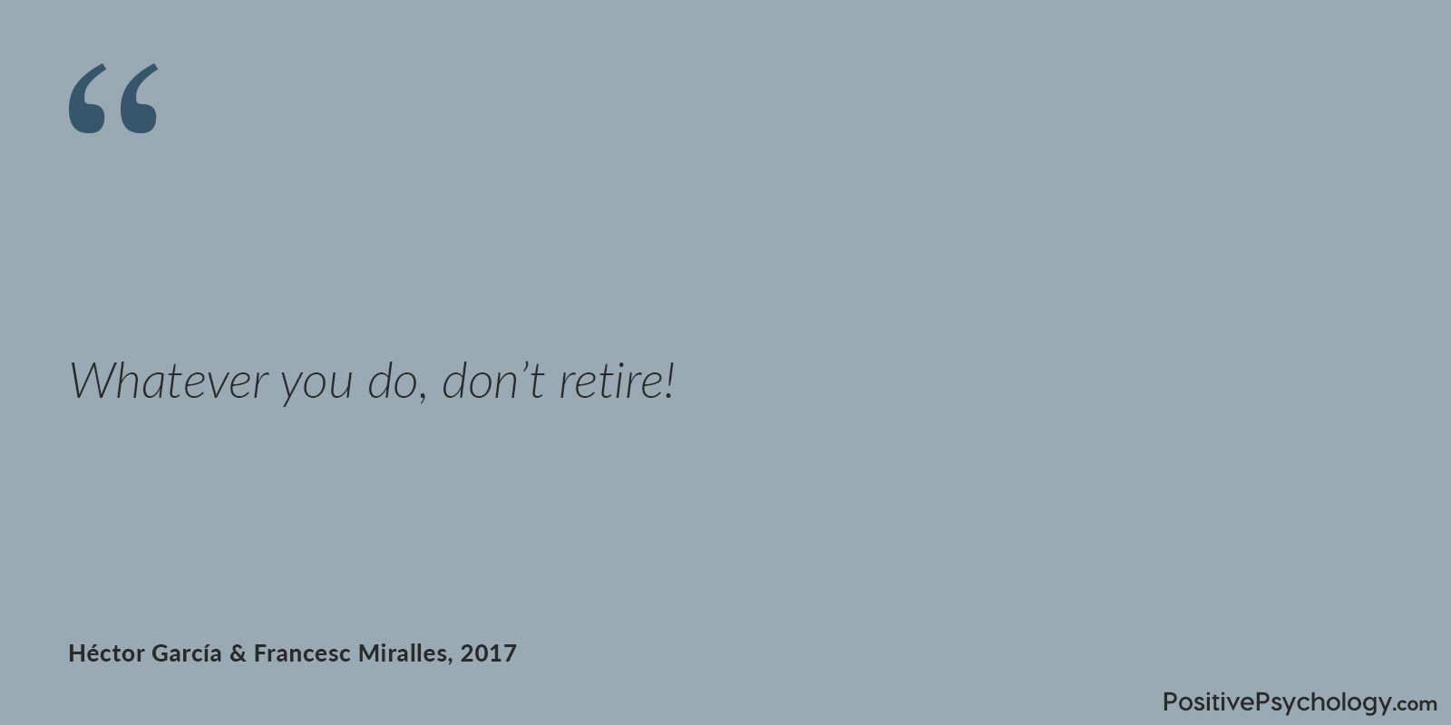 Retirement simply isn’t part of their vocabulary because they love what they do. And, unlike a person sweating away in a gym, ikigai exercise is in harmony with nature. Because of this, those who live an ikigai lifestyle can experience a consistent state of flow (i.e., complete absorption in an activity that is both spontaneous and effortless; Nakamura & Csikszentmihalyi, 2014).