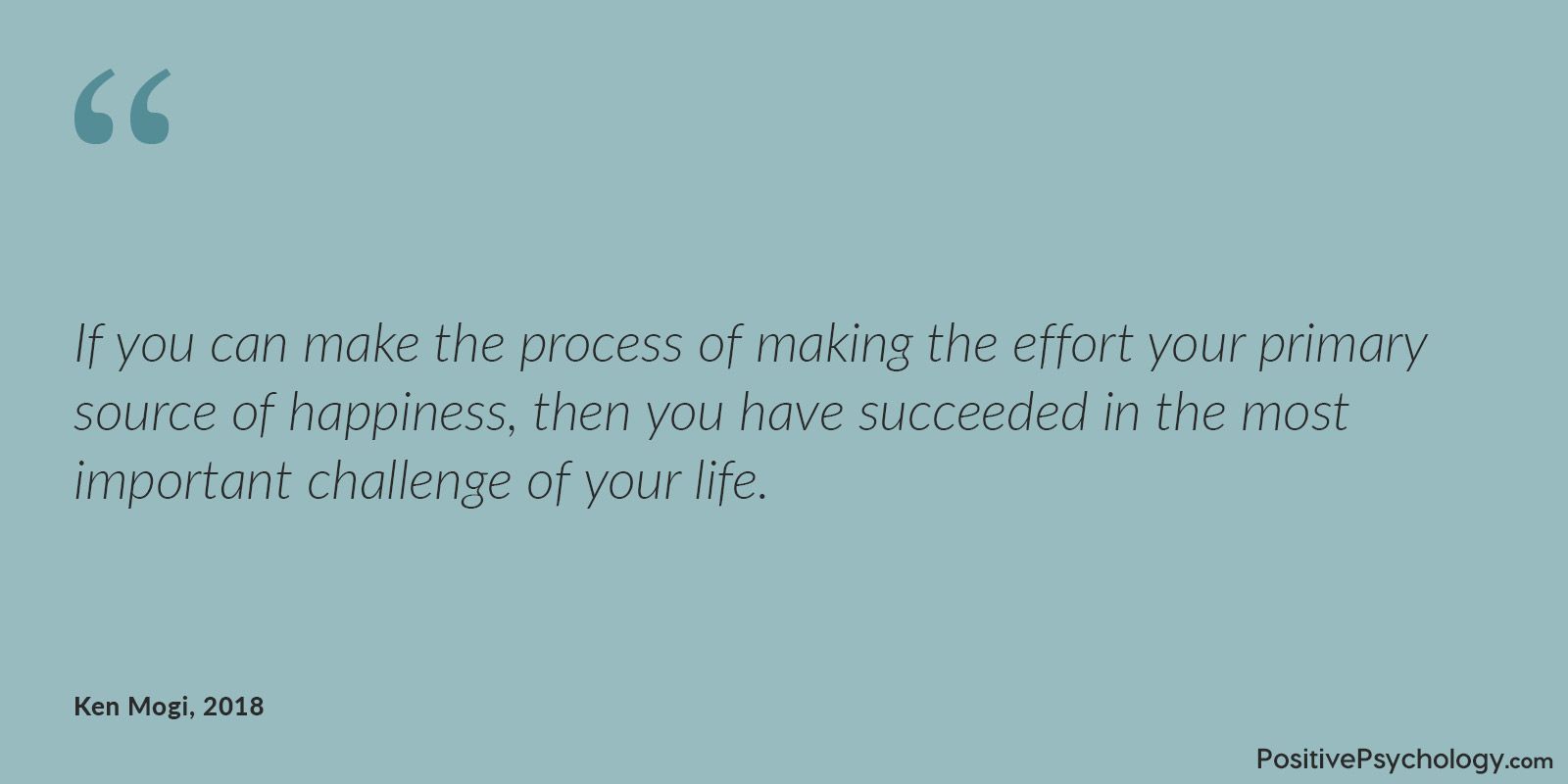 If you can make the process of making the effort your primary source of happiness, then you have succeeded in the most important challenge of your life.